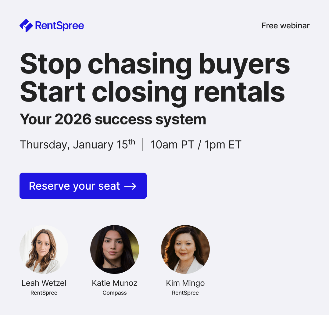 Discover how shifting your focus to rentals can unlock more consistent income and stronger client pipelines in 2026. This webinar explores proven systems top agents use to streamline rental transactions, attract qualified tenants, and close deals faster without constantly chasing buyers. You’ll hear directly from an experienced rental agent who has built a meaningful income through rentals, sharing how they source leads, convert renters, and generate repeat and referral business. We’ll wrap with a live demo of RentSpree.com, showing how to simplify the rental journey from application to lease.
