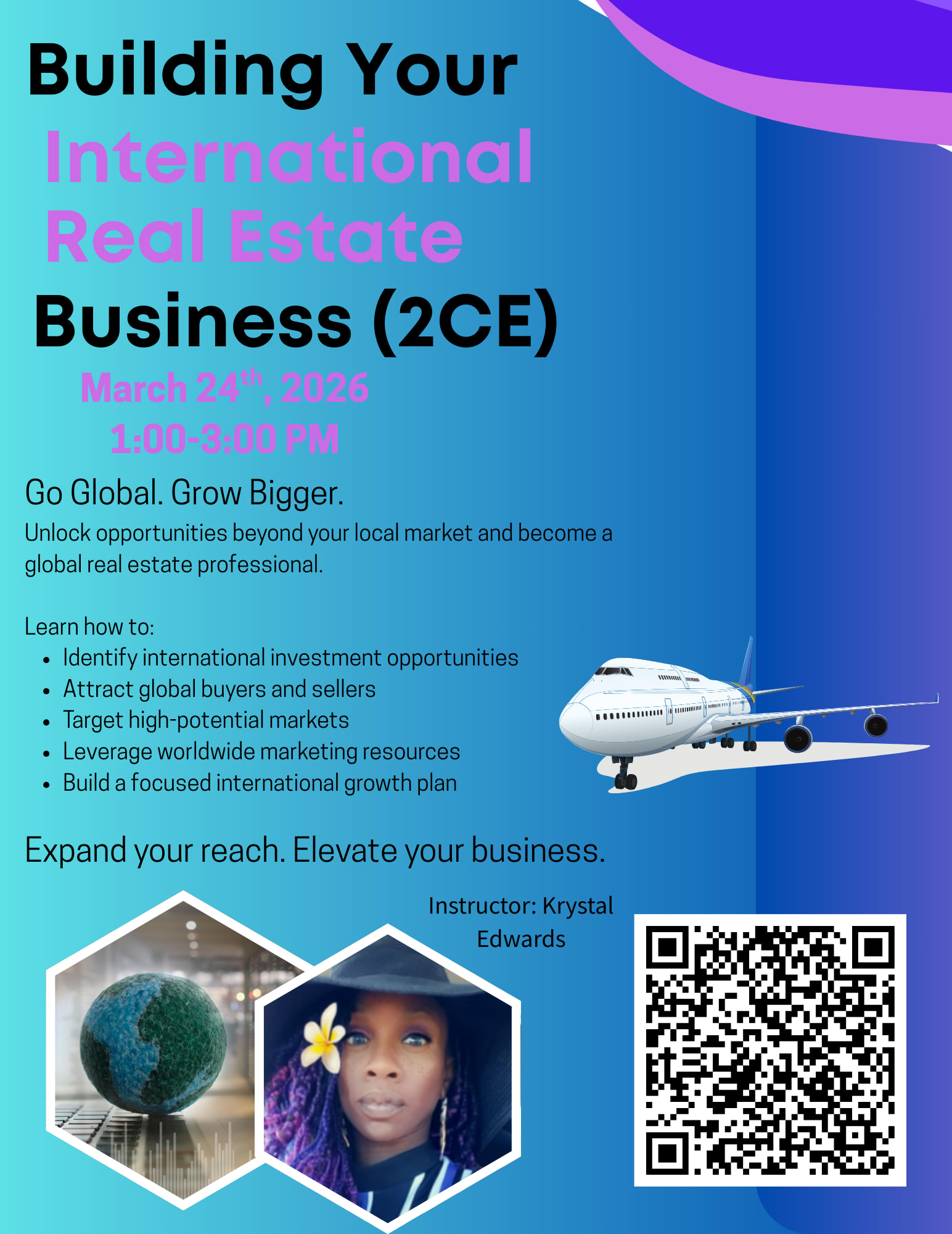 This course will explore methods agents and brokers can use to learn about incoming and outgoing international investments, identify opportunities these markets provide, and acquire the knowledge and skills needed to build their